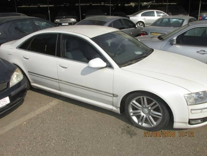Autoturism marca Audi A8 - an fabricație: 2004 - serie șasiu: WAUZZZ4E54N025750 - nr. de km la dat evaluării: 181.952 (declarați de cei prezenți la inspecție) - cai putere – 233 - diesel - motor 3.0 TDI quattro Tiptronic - prezintă lovituri vizibile, geamul șoferului a rămas deschis existând posibilitatea pătrunderii apei în cabină. *fiind interogata baza de date autoDNA, s-a constatat faptul că autoturismul a fost adus din Germania în România în anul 2009, moment în care avea un nr. de 216.081 km și avea culoarea albastru închis. |