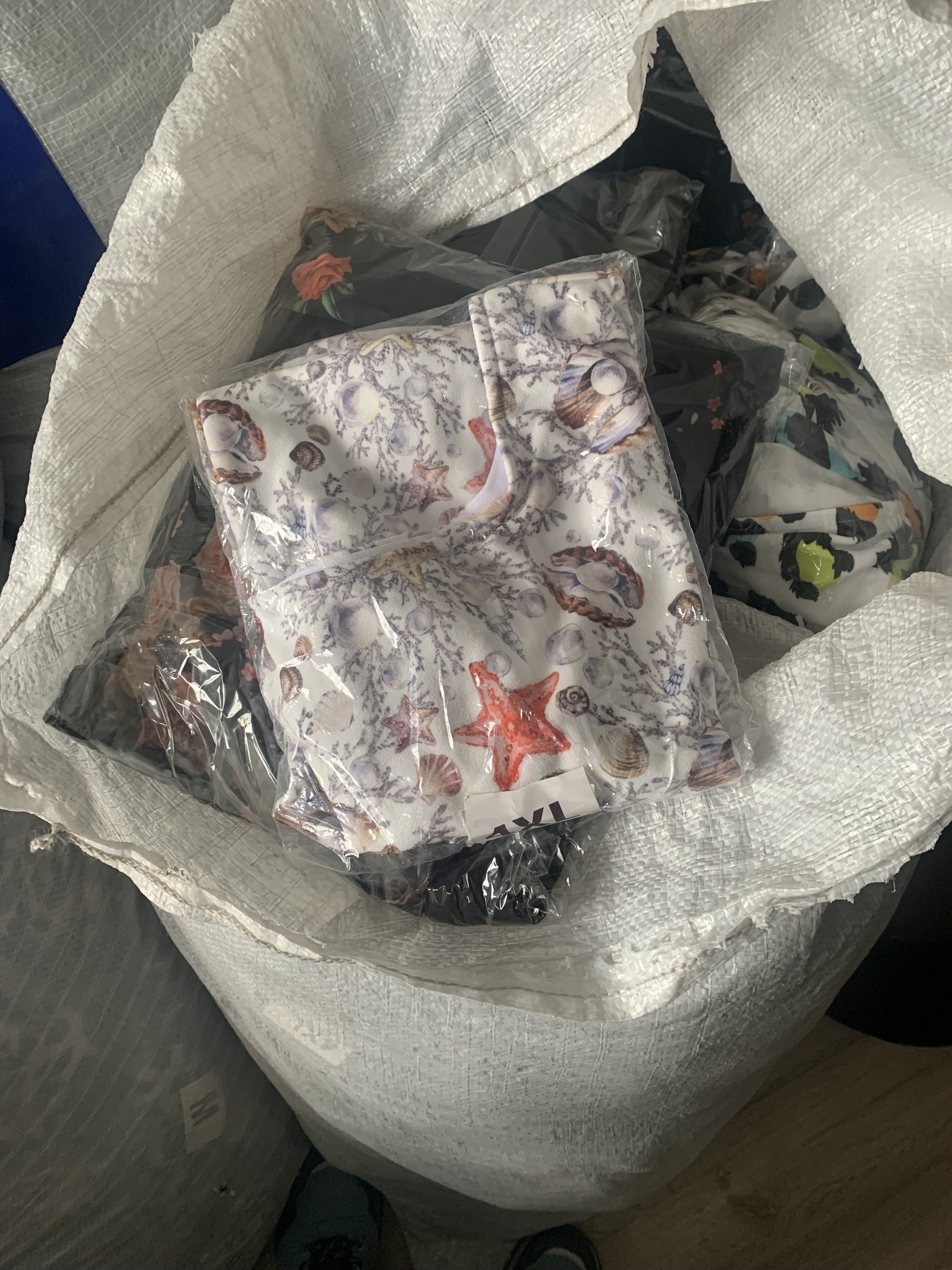 Observații: - bunurile sunt depozitate în saci, iar majoritatea, împachetate în pungi de plastic; - materialul din care sunt confecționate – sintetic, de calitate redusă și șifonabile. - produsele nu au etichete pentru a se cunoaște producătorul și componența materialului textil; - Condițiile de depozitare sunt adecvate. |