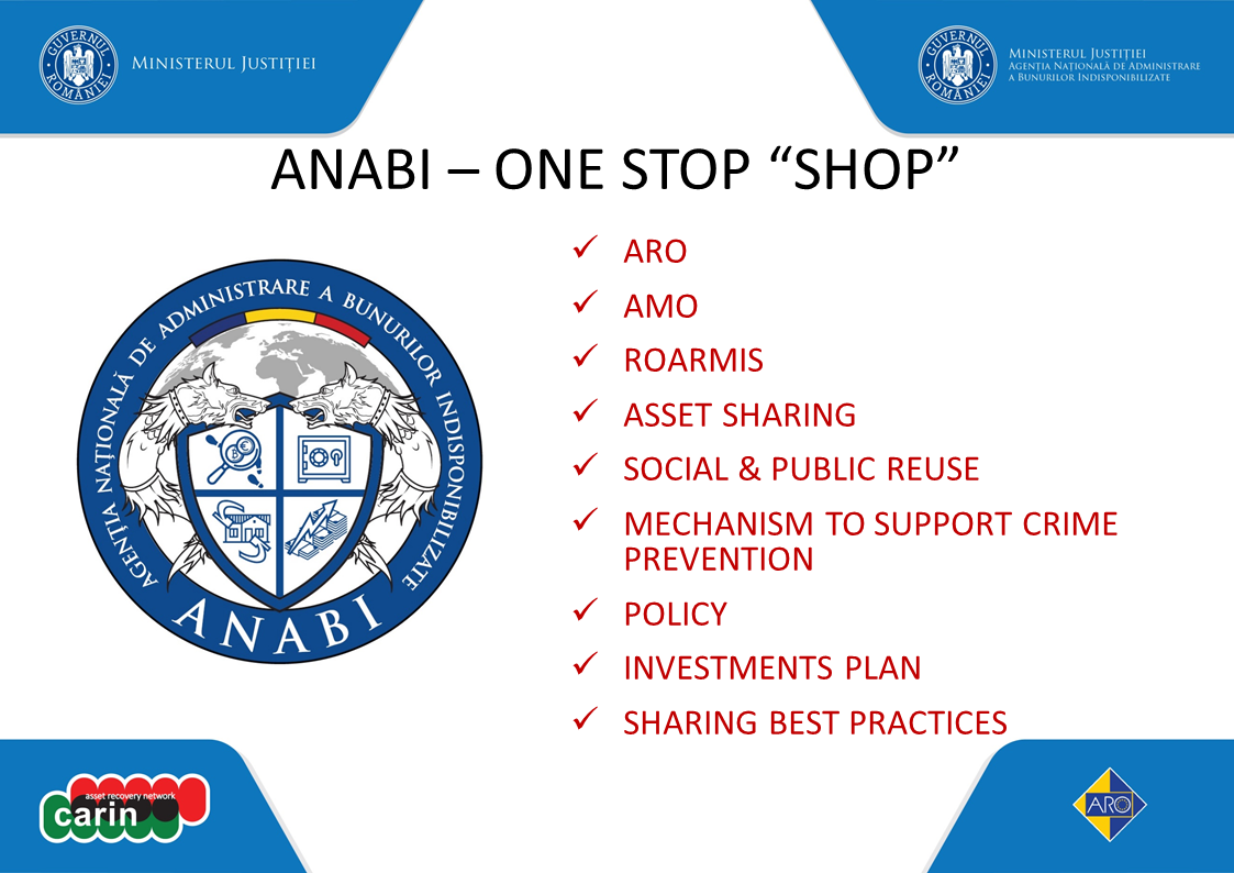 Reamintim, la nivelul Uniunii Europene, operaţionalizarea ANABI constituie un model de bune practici selectat în acest sens în cadrul Centrului de Resurse Antifraudă - https://antifraud-knowledge-centre.ec.europa.eu/library-good-practices-and-case-studies/good-practices/national-agency-management-seized-assets_ro